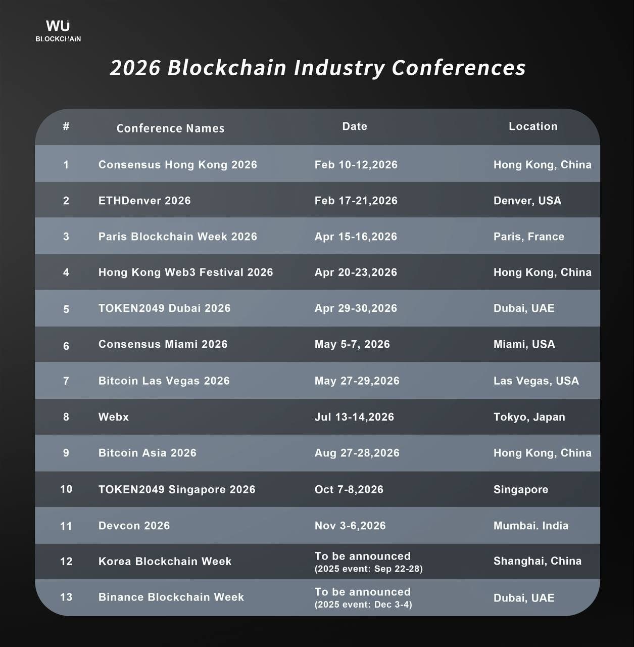 From Asia to Europe and North America, major blockchain conferences are set to return worldwide in 2026.