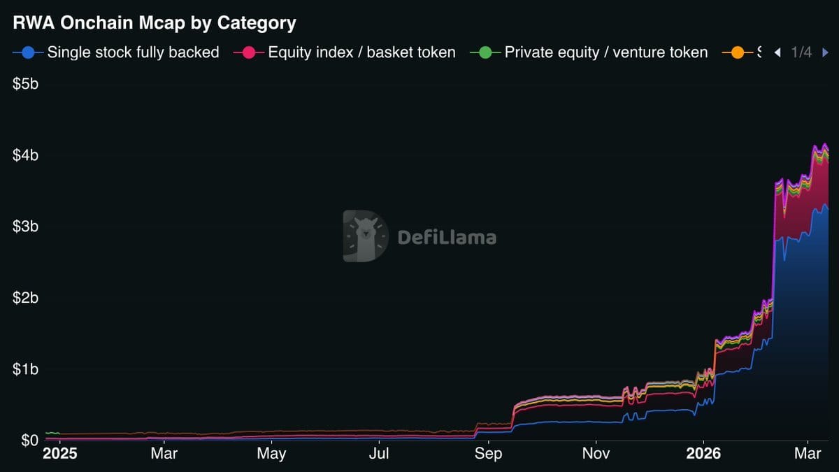 Tokenized assets surged past $4B as real-world asset adoption accelerates, signaling growing institutional interest and expanding use cases across tokenized financial assets.