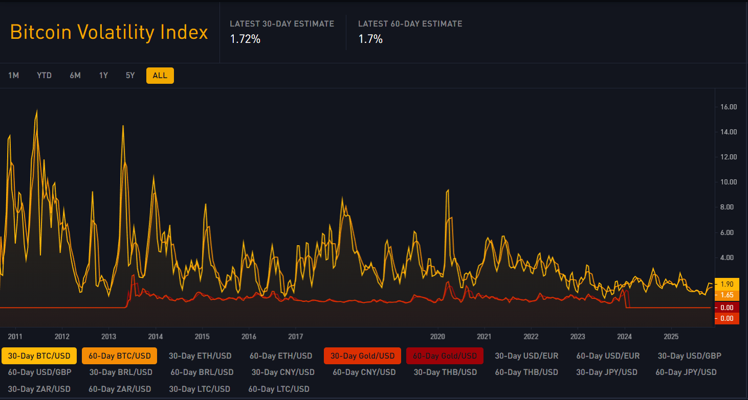 The Bitcoin Volatility Index has steadily declined since 2011, suggesting that Bitcoin’s market is maturing, with reduced speculation and greater integration into traditional financial systems.